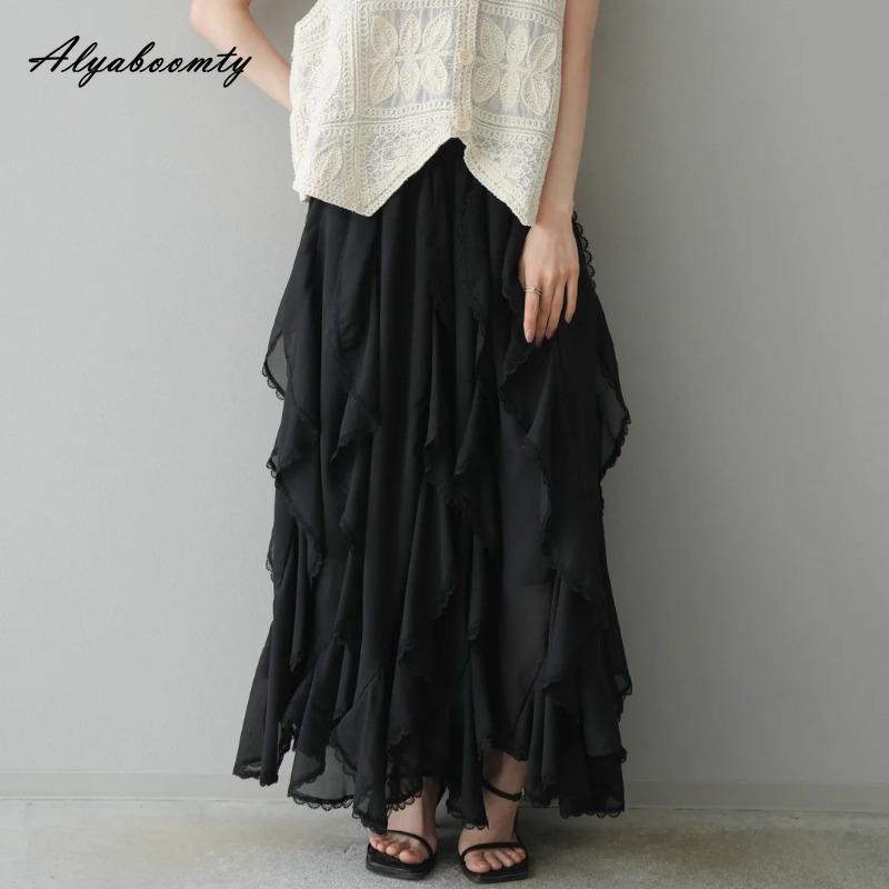 Французский стиль весна-лето женская юбка принцессы эластичный пояс белая черная юбка феи элегантные женственные многослойные оборки нестандартные юбки One Size чёрный
