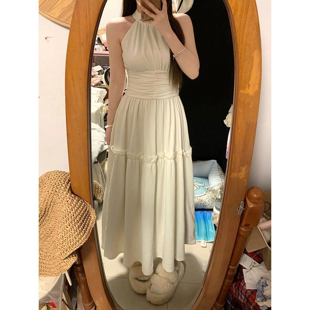 Французское белое платье без рукавов с вырезом под горло, детское летнее повседневное новое, для морского отдыха, красивое платье с акцентом на талии XL- (recommended 110-60kg)