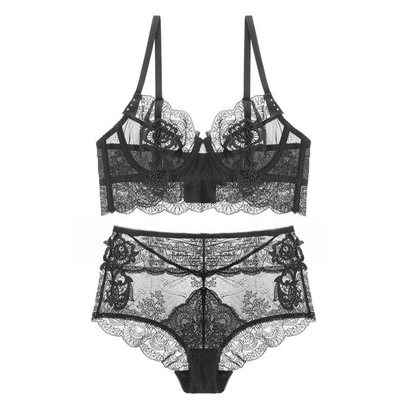 Французское женское летнее ультратонкое кружевное бра с эффектом перспективы, для большой груди, маленькое, предотвращающее провисание, сексуальное нижнее белье 90C чёрный