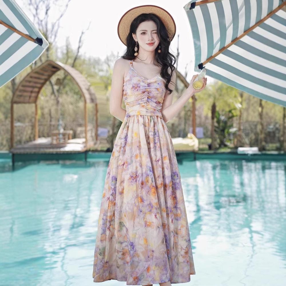 Французское ретро и красивое масло, цветочный сарафан, новое летнее пляжное платье для отпуска, пляжная юбка M