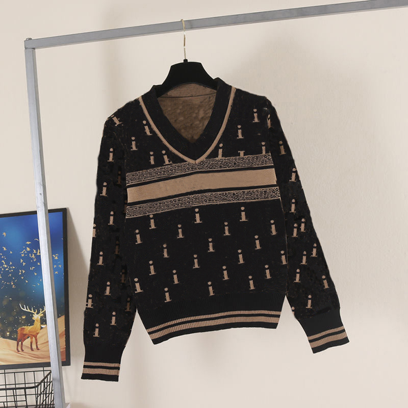 NEW Women' Sweater Casual Knit Contrast Color Long Sleeve Autumn Fashion High Quality Classic Ladies Sweaters Brand Luxury Designer Clothing, Clear