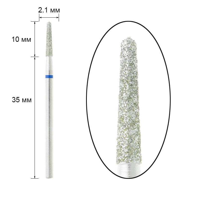 Фреза алмазная Vladmiva - игла диаметр 2,1 мм, рабочая часть 10 мм, синяя № 2, Синий
