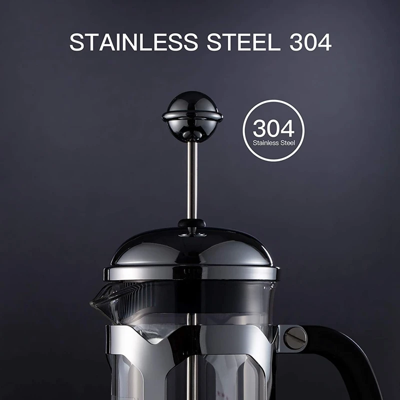 Френч-пресс для приготовления кофе, система прессования, Термостойкое утолщенное боросиликатное стекло, прочное и легкое очищение