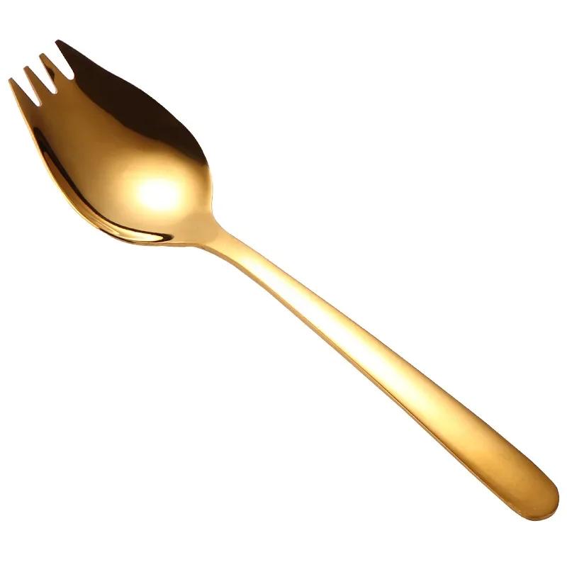 Фруктовая вилка ложка нержавеющая сталь мороженое салат десертная посуда торт закуска салатная вилка ложка 2 в 1 разноцветные аксессуары для бенто золотой