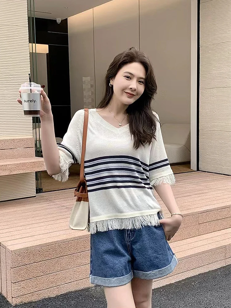 Футболка большого размера с круглым вырезом и коротким рукавом, с принтом в стиле пэчворк - мягкая полиэстеровая ткань средней эластичности, женская свободная одежда на весну и лето XL светло-синий