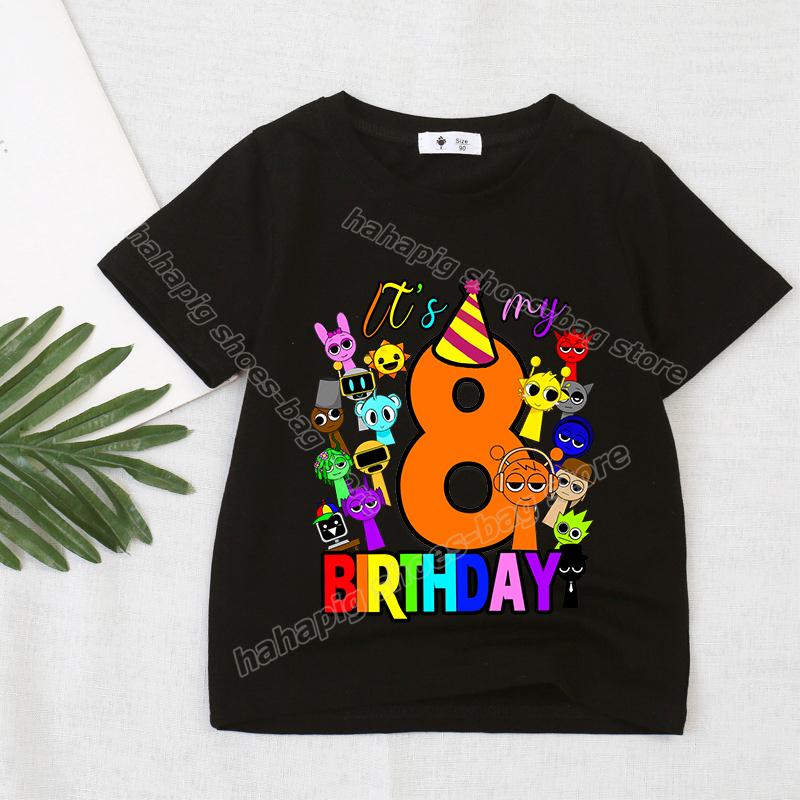 Футболка с номером дня рождения Game Sprunki для девочек и мальчиков, футболки с коротким рукавом, летние повседневные детские топы, черная футболка, одежда для малышей с героями мультфильмов 140