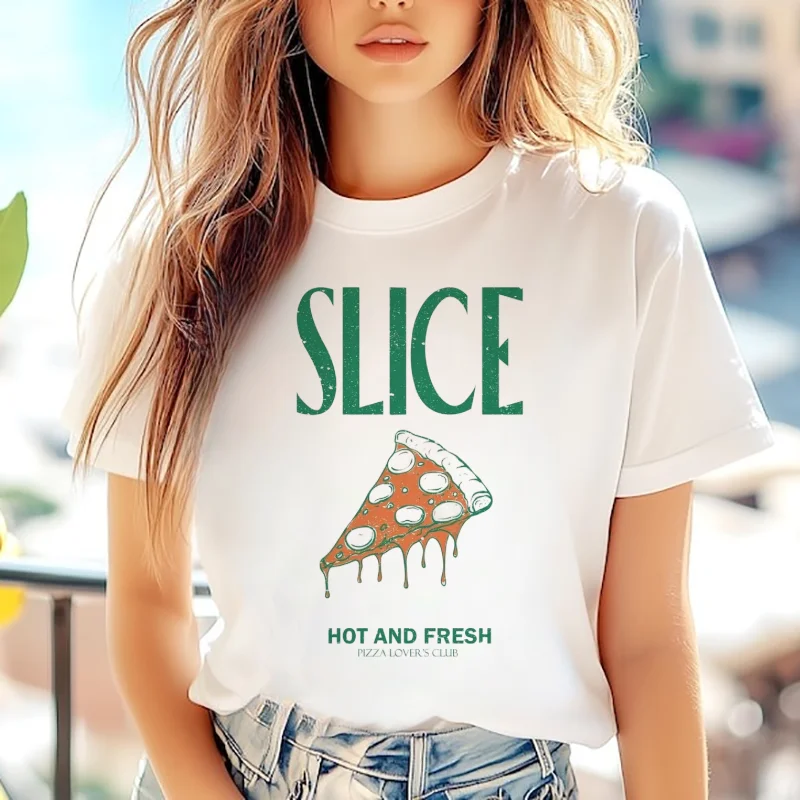 Футболка с принтом для пиццы, горячая и свежая футболка с узором, пляжная футболка с круглым вырезом, летний стиль, универсальная белая футболка для отдыха и отдыха