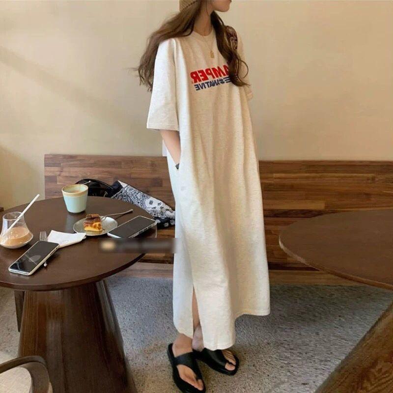 Футболка-юбка очень большого размера, платье-женская летняя юбка до колена, свободная повседневная юбка
