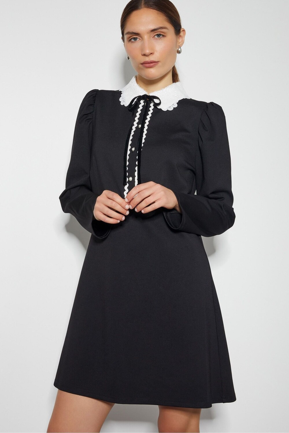 women's runway dresses square neckline long lantern sleeves pleated elegant fashion high street vestidos prom, Black