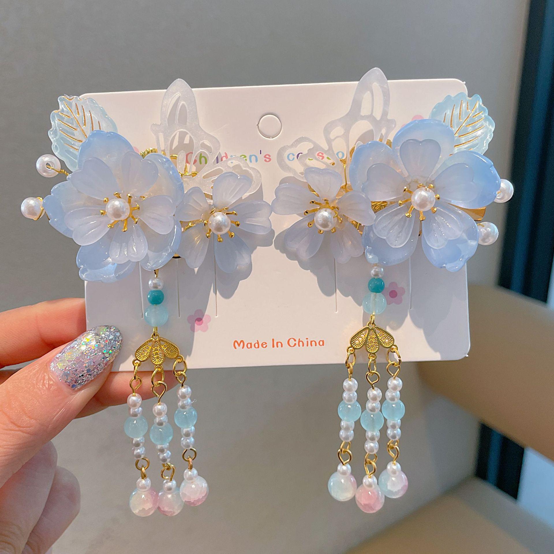 Ханьфу Женский Цветочный Головной Убор с Кисточками - Заколка для Волос в Стиле Принцессы для Девочек