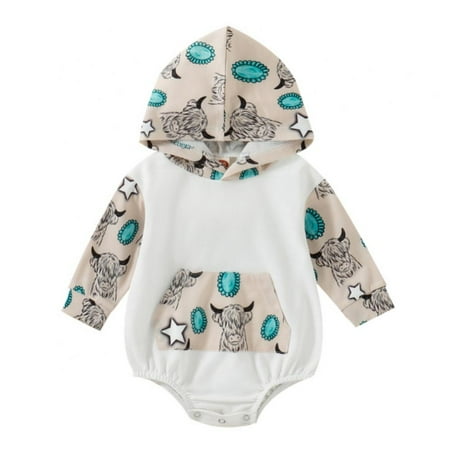 Xmarks Infant Boys Girls Long Sleeve Cartoon Cow Printed Hooded Pullover Romper Newborn Sweatshirt Bodysuits White 18-24M