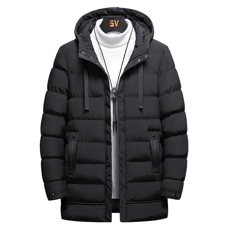 Хлопковая куртка Осень и Зима Утолщенная Теплая С капюшоном Средней длины На все случаи жизни Пальто с подкладкой до колена XS чёрный