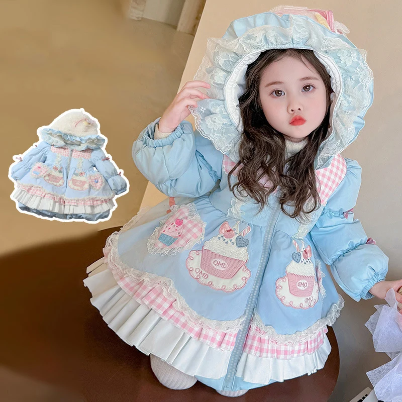 Хлопковая куртка в стиле Лолиты с героями мультфильмов для девочек, зимняя детская толстая теплая и модная куртка с капюшоном и украшением в виде банта, хлопковая милая куртка
