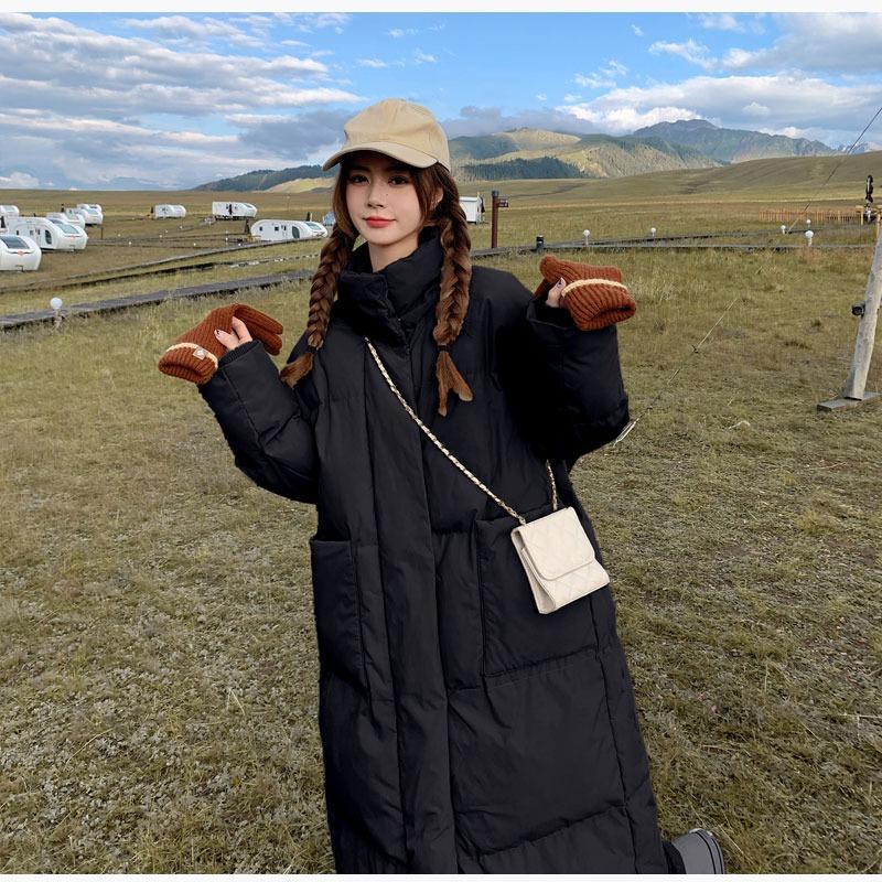 Хлопковая куртка женская куртка корейская версия средняя и длинная куртка большого размера свободная студенческая длинная куртка-пуховик XXL чёрный