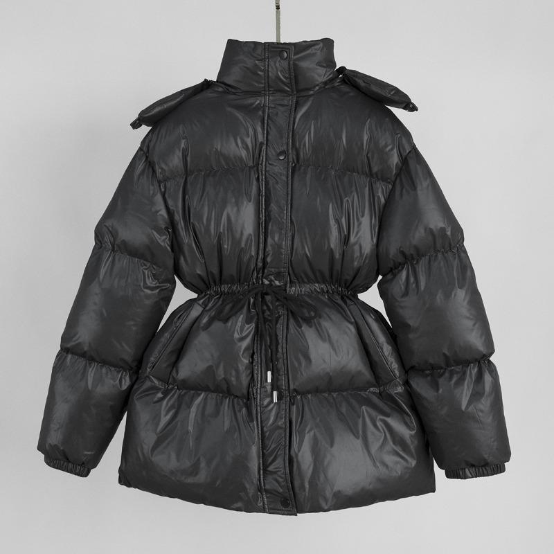 Хлопковая куртка приталенного кроя на шнурке Зимняя хлопковая куртка с капюшоном на молнии Удобная и теплая хлопковая куртка XS чёрный