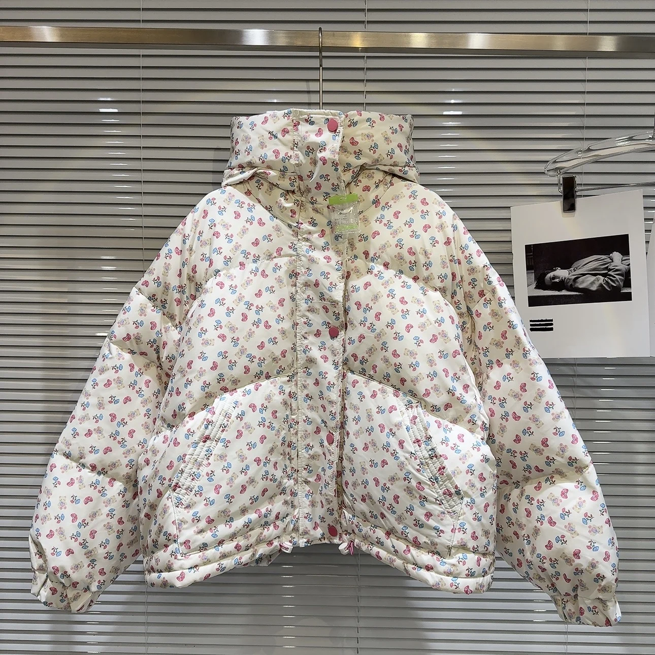 Хлопковая куртка с капюшоном и ручной росписью с цветочным узором, теплая модная прямая линия, женская зимняя верхняя одежда, пальто