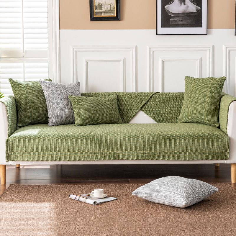 Хлопковая и льняная подушка для дивана Круглый год Нейтральная Нескользящая Минималистичная Современная Легкая Роскошная Ткань Домашняя Подушка Спинка Полотенце Прохладная Cotton thread-Emerald Green 45*45 pillow case