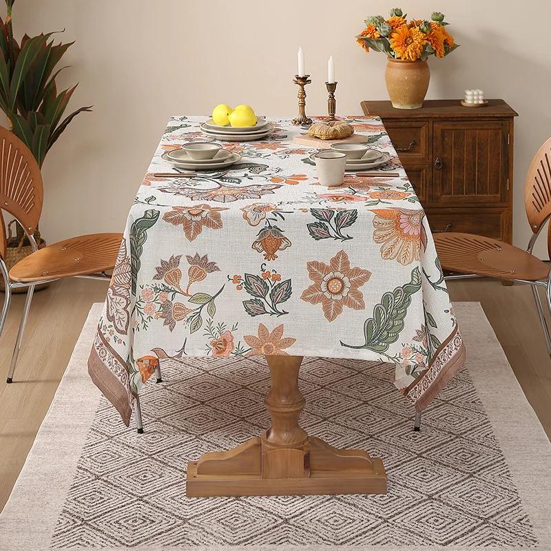 Хлопковая и льняная скатерть с растительным принтом, домашняя утолщенная пылезащитная настольная крышка, прямоугольная декоративная скатерть для отеля 132x132cm 1pcs