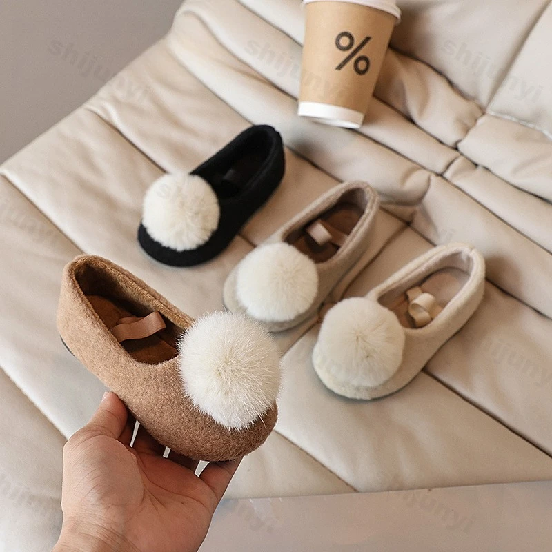 Хлопковая обувь для девочек, осень 2024, новая мода, милая уличная нескользящая плюшевая обувь, легкая удобная обувь Мэри Джейн на мягкой подошве