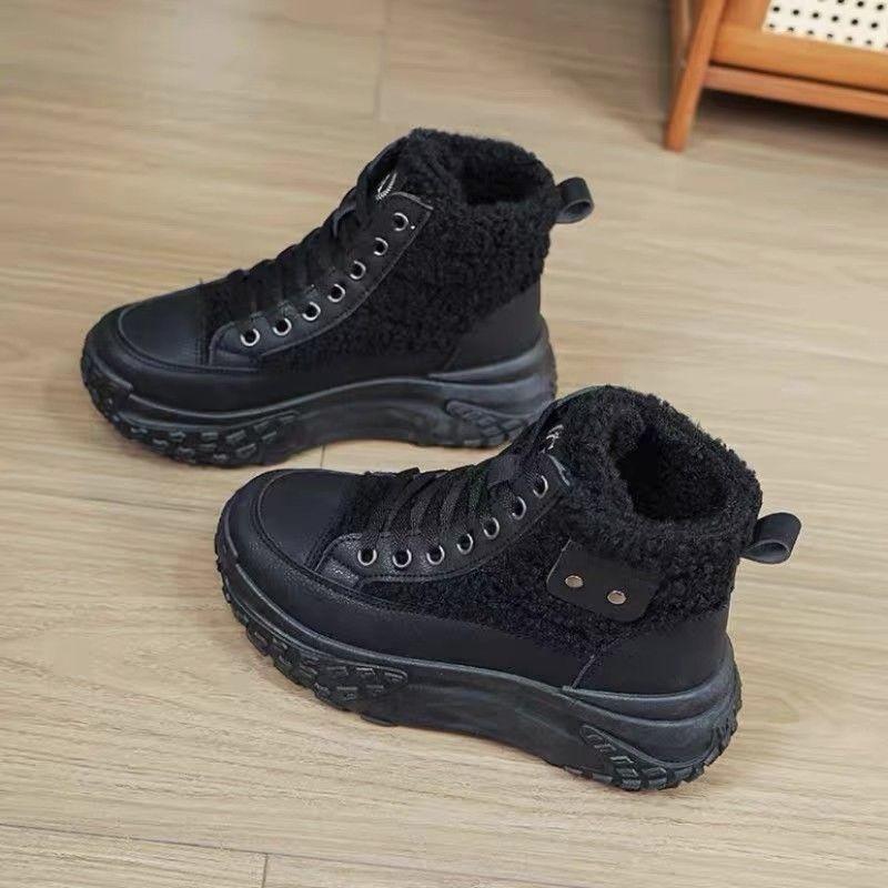 Хлопковая обувь женская зима 2025 новая бархатная утолщенная теплая зимняя обувь нескользящая мягкая подошва легкая высокая спортивная обувь 40 чёрный