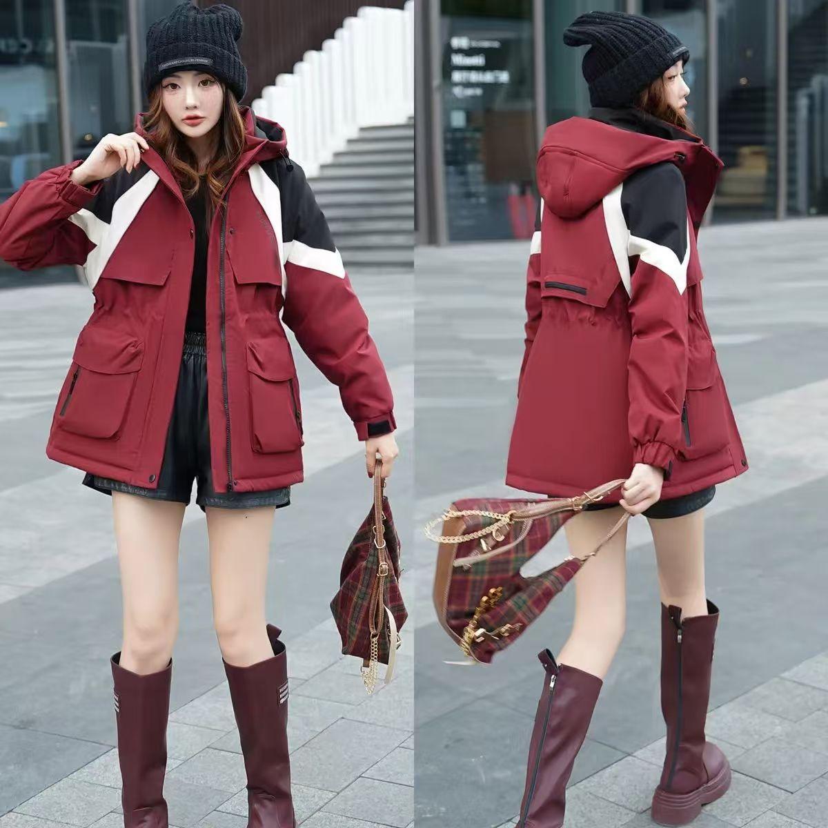 Хлопковая одежда 2025 с капюшоном, утолщенная, осенне-зимняя, женская, свободного кроя, большого размера, модная, пуховая хлопковая одежда, женские модели XXL красный