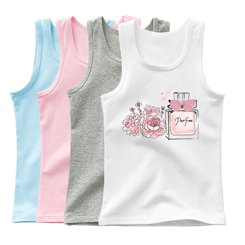 Хлопковое нижнее белье с парфюмерным цветочным принтом для девочек, летние детские розовые майки, футболка без рукавов для малышей