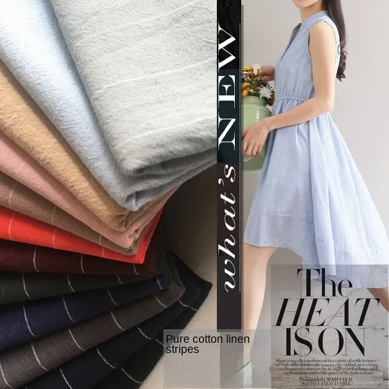 Хлопково-льняная окрашенная в пряжу ткань, летняя полосатая рубашка, модная дышащая одежда, материал для шитья своими руками на метр