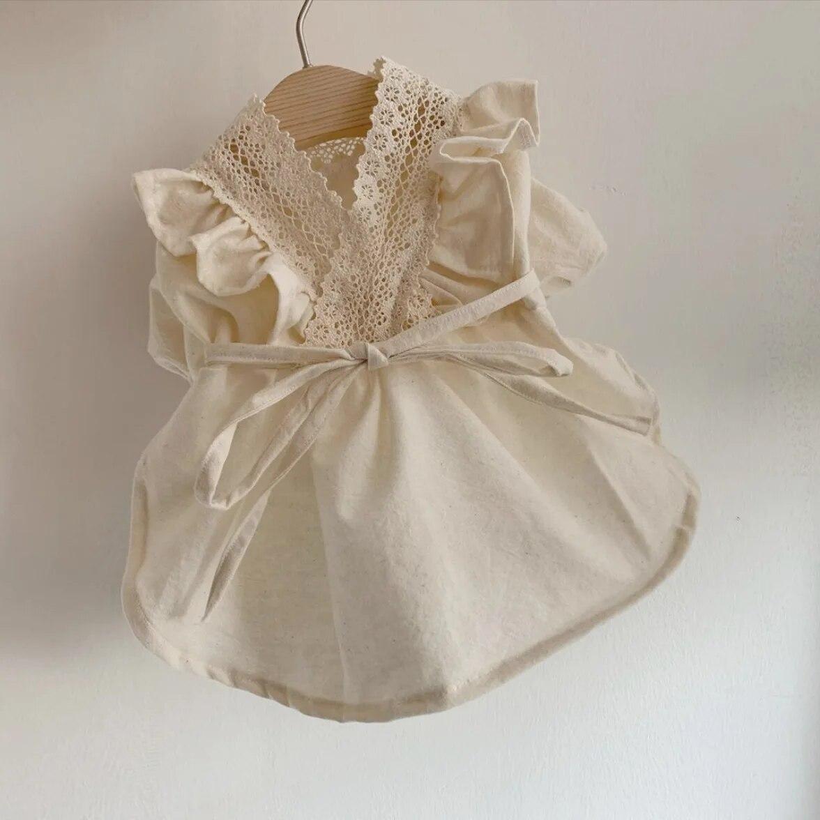 Хлопково-льняное кружево ручной работы с v-образным вырезом, кружевная повязка, юбка для собак, одежда для собак, платье для щенков, платья для девочек, чихуахуа, кошек