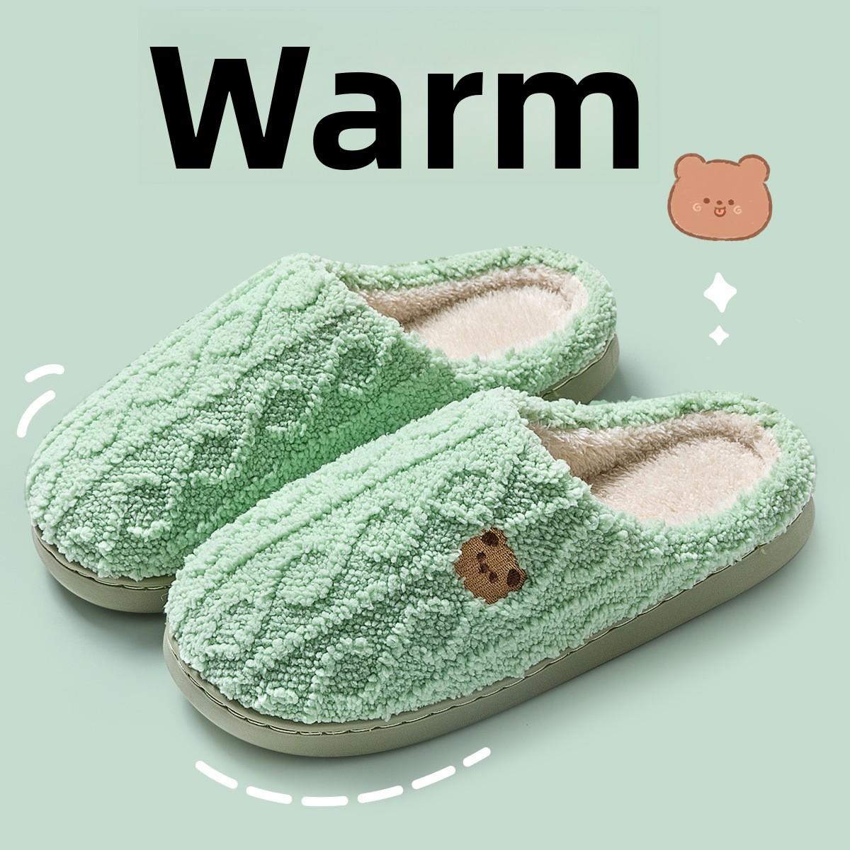 Хлопковые тапочки с головой медведя для женщин на осень и зиму, домашние плюшевые милые теплые тапочки на толстой подошве с мехом 36-37 зелёный