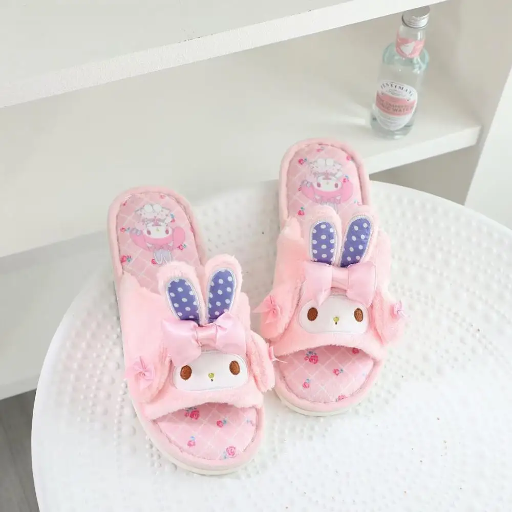 Хлопковые тапочки с рисунком «Моя мелодия», «рыбий рот», четыре сезона, домашняя домашняя обувь в стиле аниме, нескользящая обувь, модные теплые тапочки