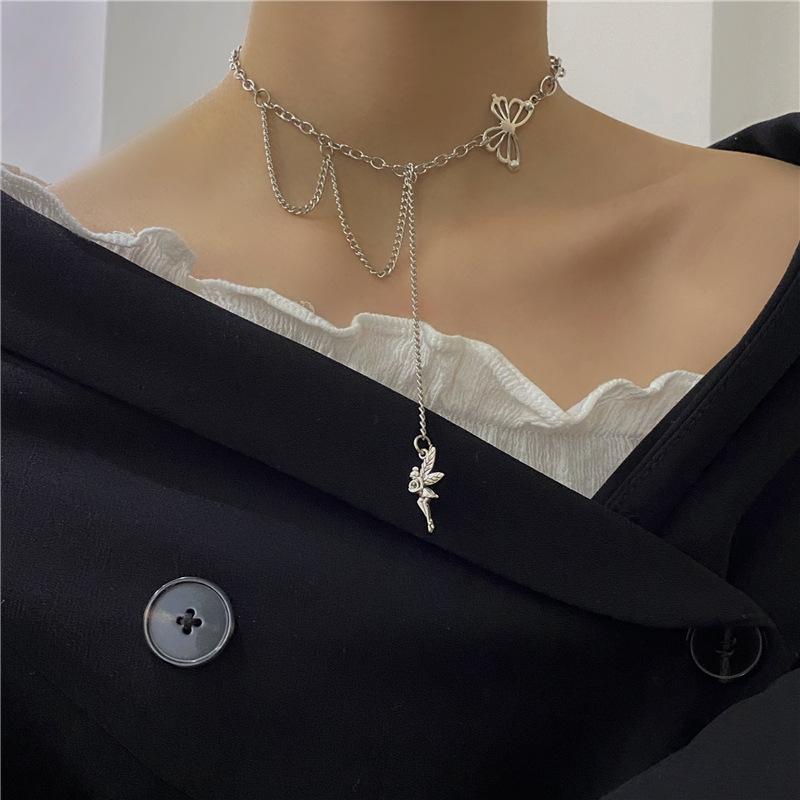 Холодный бриз бабочка ожерелье женская личность хип-хоп модная сетчатая красная цепочка для свитера длинная универсальная стильная цепочка на воротник