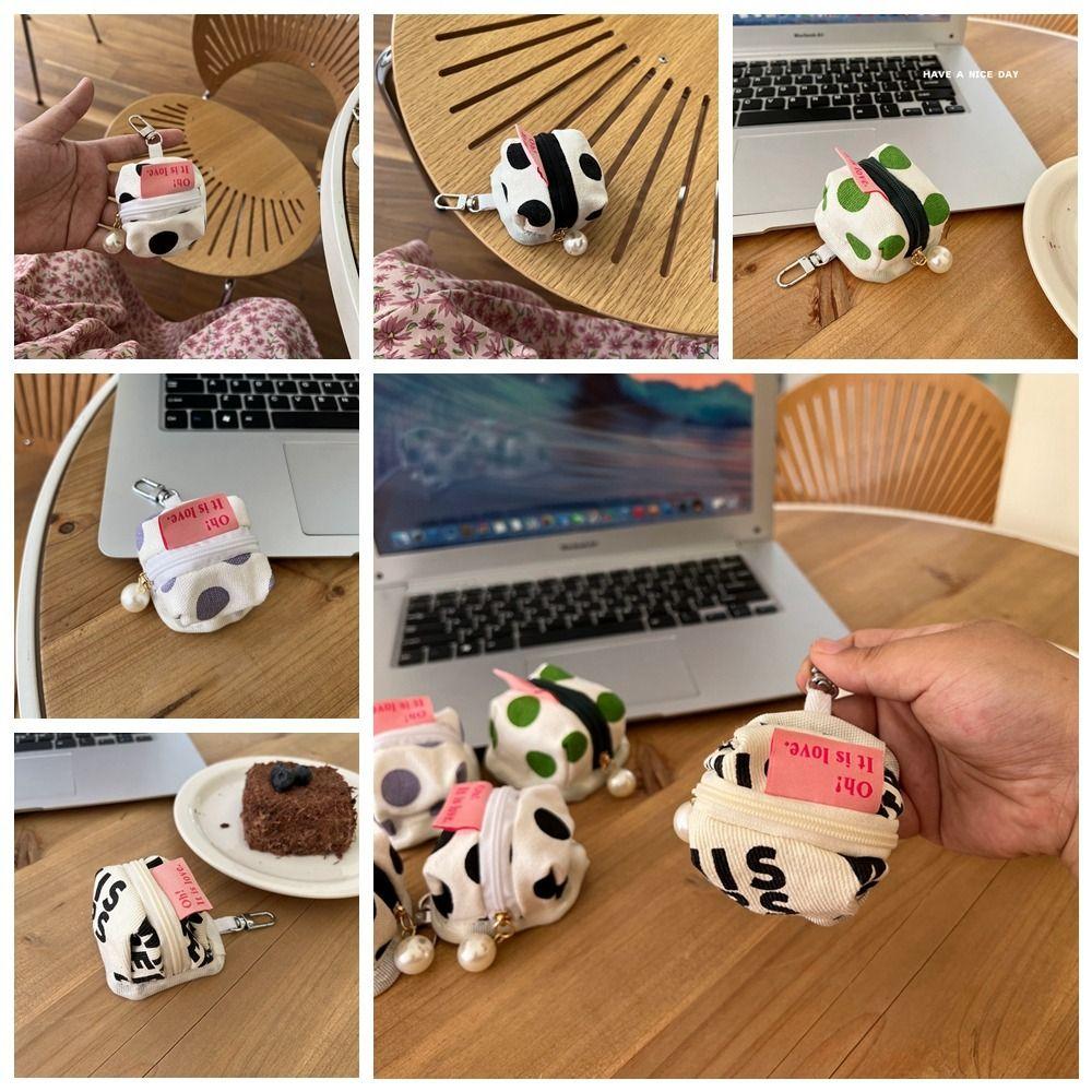 Холст с волнистой точкой, кошелек для монет, мини-сумка для хранения, милая сумка для наушников, брелок для ключей, детский