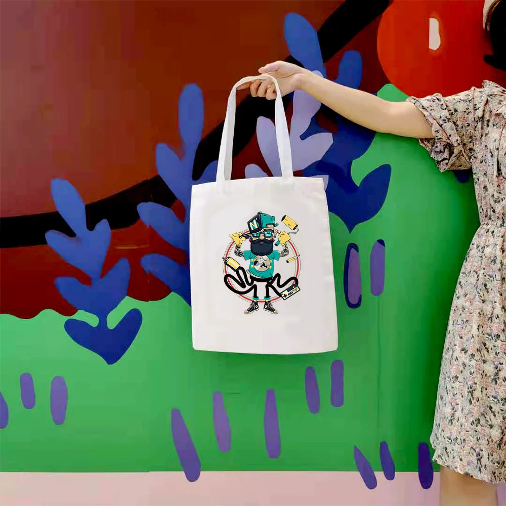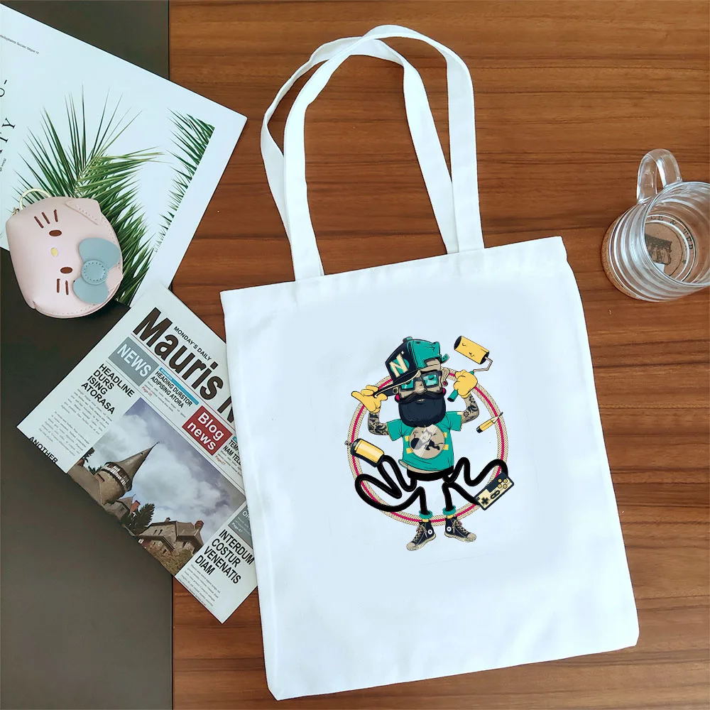 Холщовая Сумка для покупок на одно плечо с мультяшным принтом, Экологически чистая Складная портативная вместительная сумка для хранения, ...