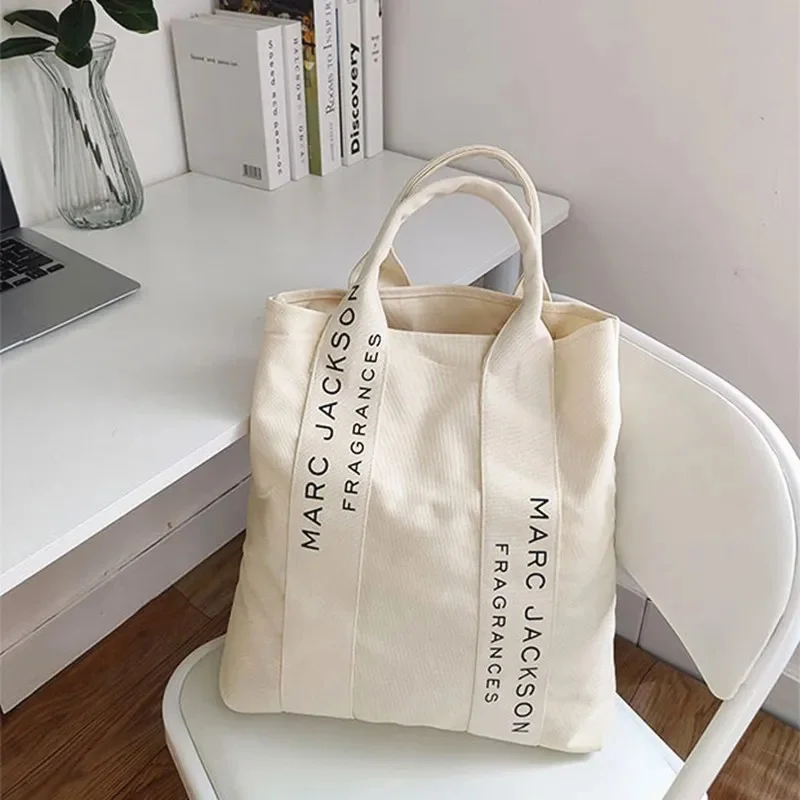 Холщовая Сумка, 1 шт., Минималистичная черно-белая большая сумка для покупок с надписью, тканевая многоразовая женская сумка-тоут через плечо