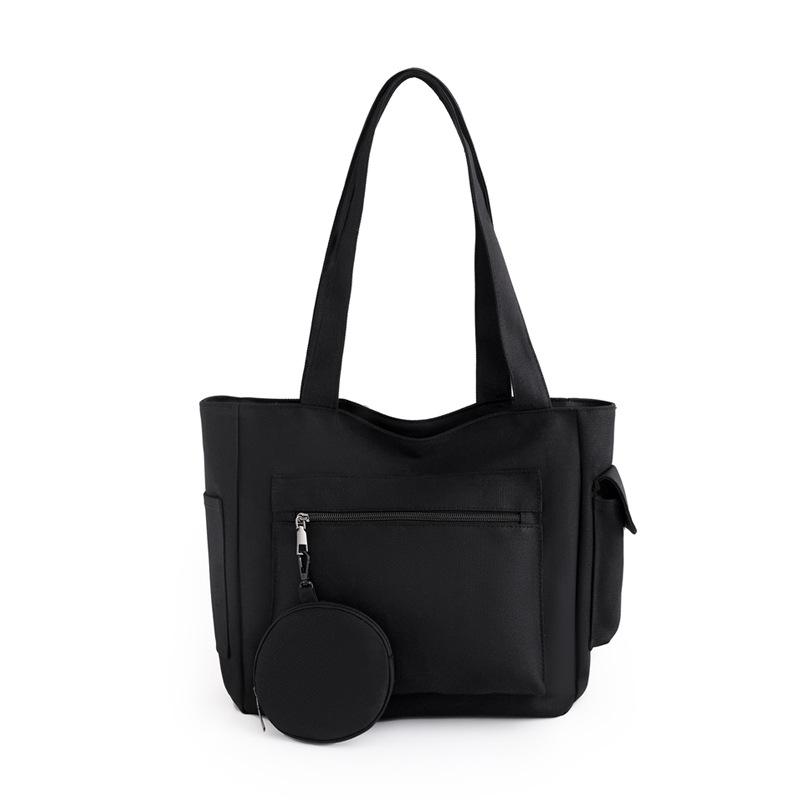 Холщовая сумка женская большая вместительная школьная сумка-тоут чёрный