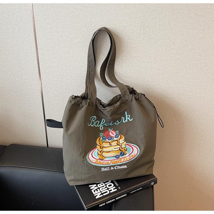 Холщовая сумка женская большой вместимости новая летняя простая универсальная на плечо сумка-мешок на шнурке студенческая сумка-тоут серый