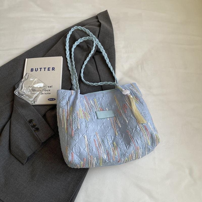 Холщовая сумка женская большой вместимости 2025 новая летняя для отдыха и красоты на одно плечо студенческая для занятий сумка-тоут для поездок на работу Without pendant синий