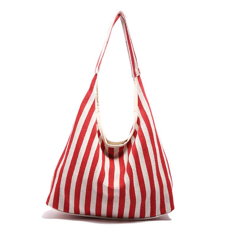 Холщовая сумка женская большой вместимости 2025 новая осенняя повседневная на плечо для покупок в полоску классная сумка-тоут