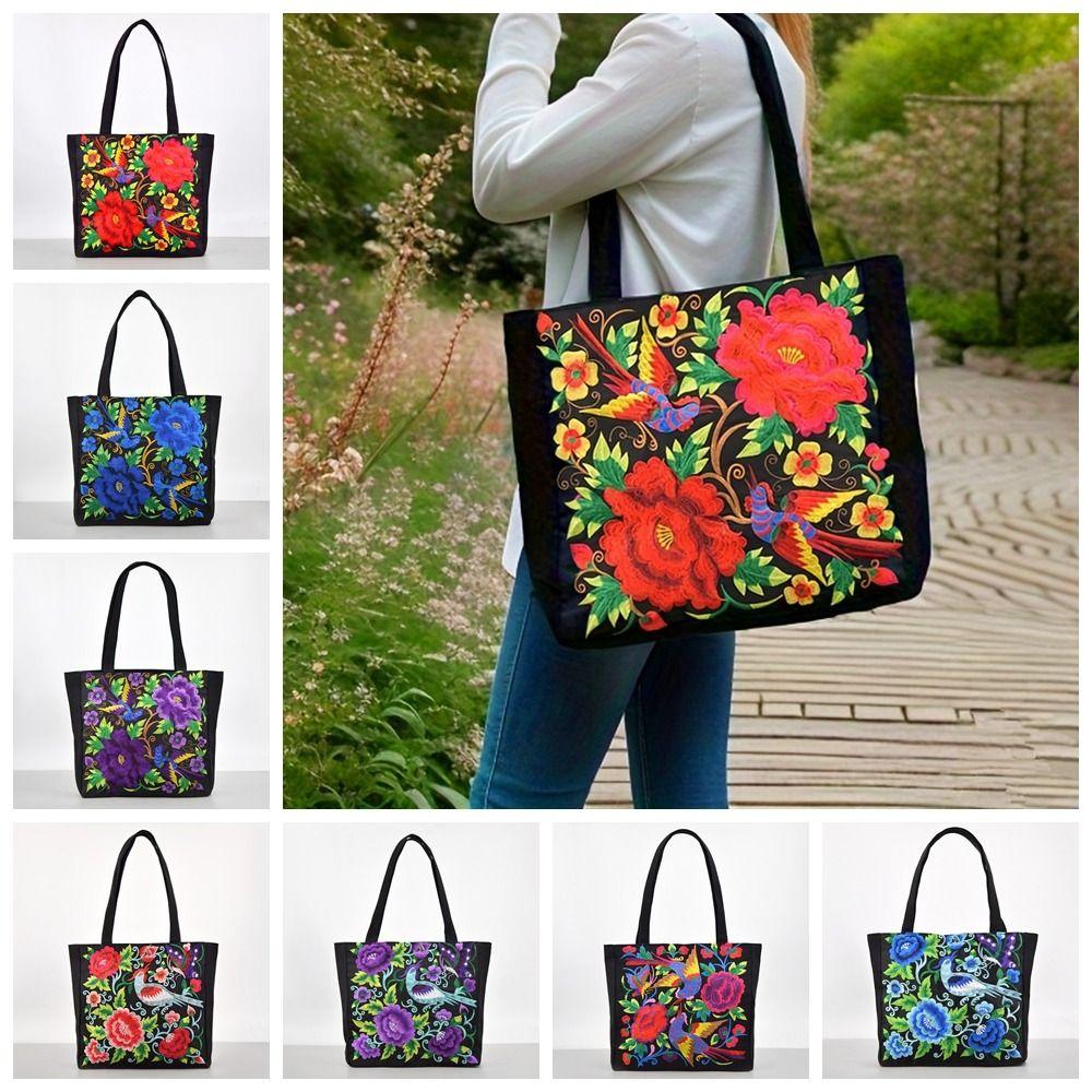 Холщовая сумка с вышивкой и цветком, холщовая сумка на плечо, простая сумка для хранения в этническом стиле