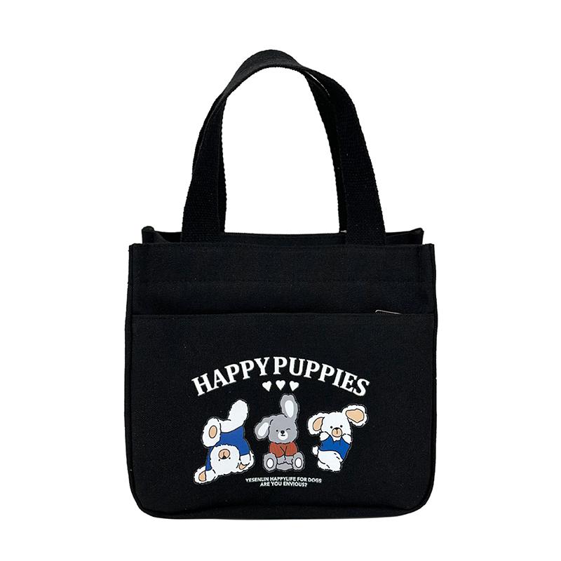 Холщовая сумка-тоут большой вместимости, многоразовая сумка через плечо, милая женская сумка, сумка с тремя маленькими кроликами, женская холщовая сумка чёрный