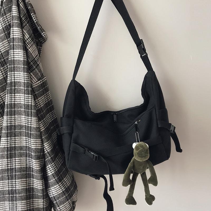 Холщовая сумка Harajuku, темная сумка для работы в отделе, однотонная женская сумка через плечо, большая вместительная функциональная сумка, прилив чёрный