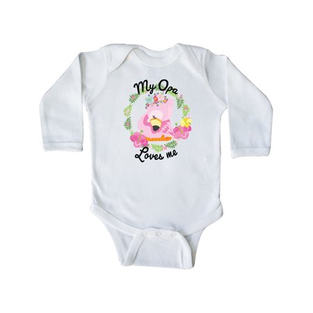 Inktastic Baby Flamingo My Opa Loves Me with Flower Wreath Gift Baby Boy or Baby Girl Long Sleeve Bodysuit