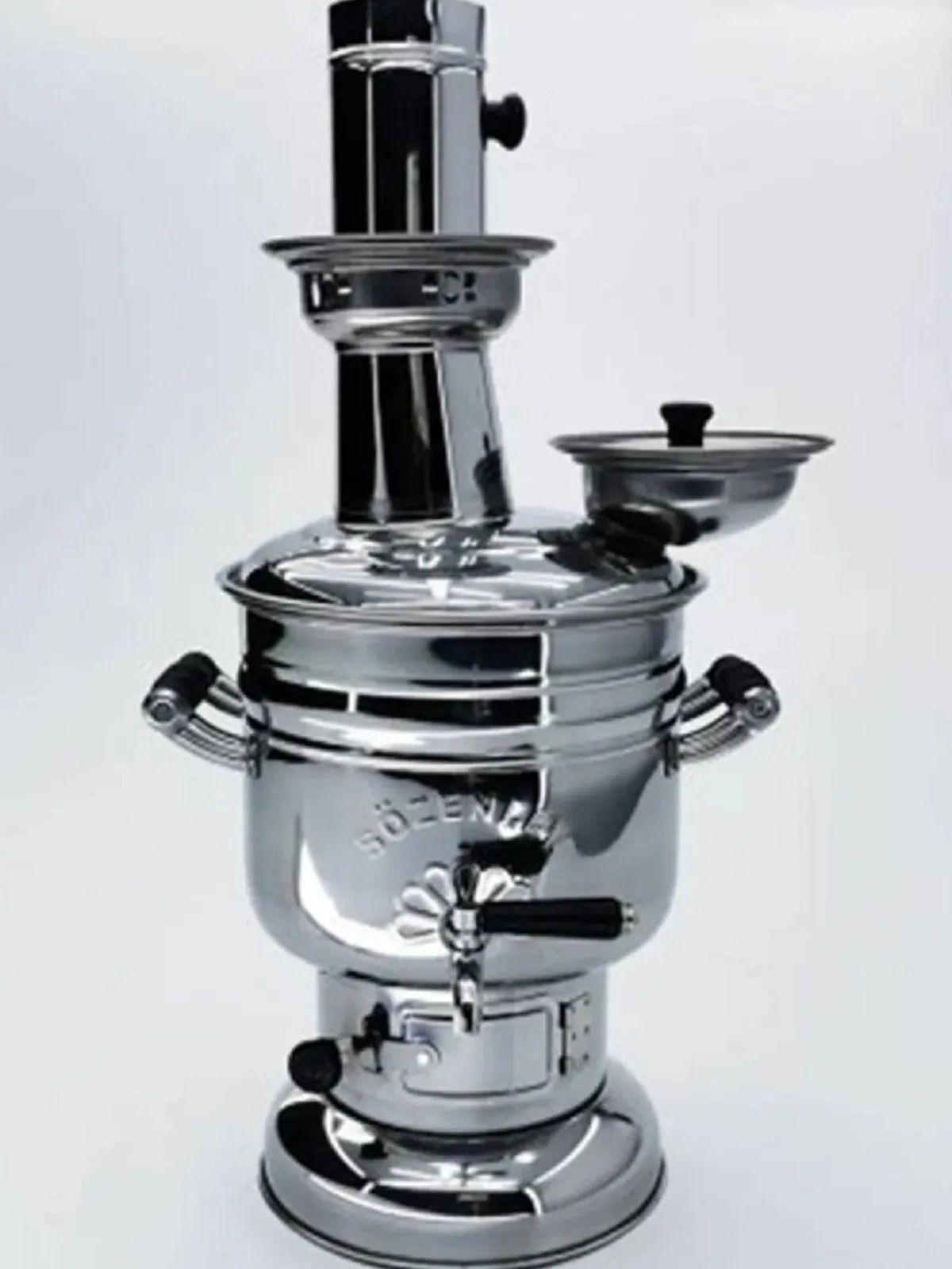 Хромований дерев яний самовар, 4 л, верхня кришка відкривається. Чайник, сталевий дерев яно-вугільний самовар із пакетом