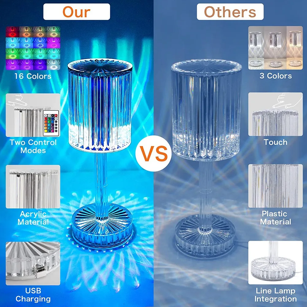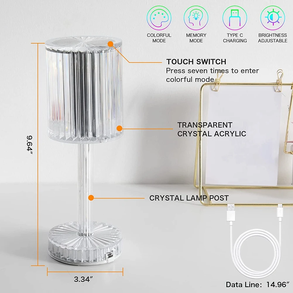 Хрустальная настольная лампа дневная Сенсорная лампа 16 цветов меняющая кристалл лампа 3D Алмазная акриловая маленькая Настольная лампа с д...