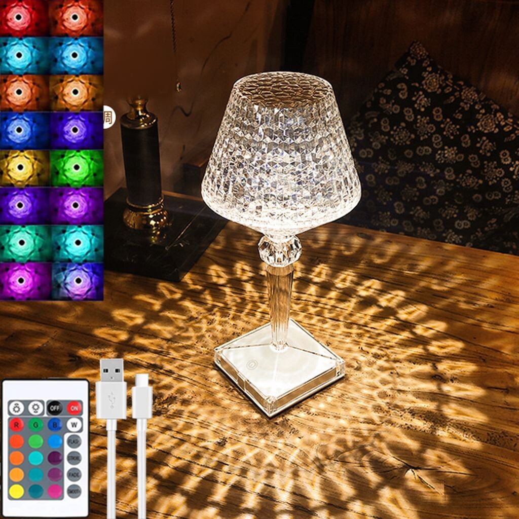 Хрустальная настольная лампа, перезаряжаемая от USB, акриловая декоративная настольная лампа, прикроватная лампа для спальни, RGB, меняющая цвет, хрустальная осветительная лампа, узор A Topchances, прозрачный