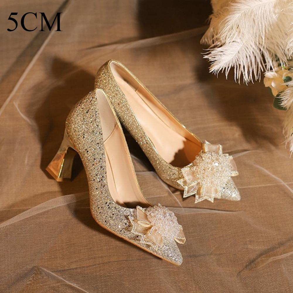 Хрустальные свадебные туфли женские новые Свадебное платье Циухэ Двойной способ ношения Туфли на высоком каблуке для подружек невесты Свадебная обувь Большой размер Плюс Толстые туфли-лодочки 40