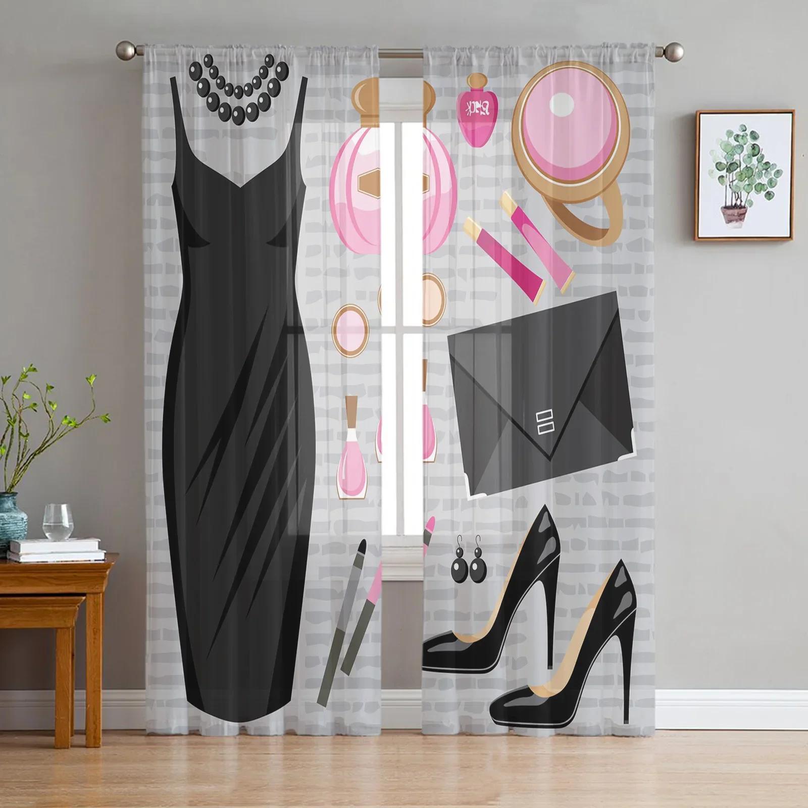 Хрустальные туфли на высоком каблуке Алмазные Черные Шифоновые Прозрачные Шторы для Гостиной Спальни Украшение Оконные Вуали Тюлевые Драпировки Штора W135 x H115cm x1&Grommet Top