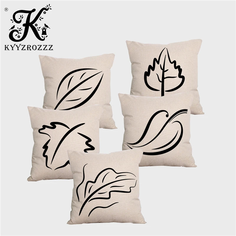 Художники украшения дома черный и белый лист растения подушка набор ручная роспись эскиз живопись листья льняная Печать Подушка 45см