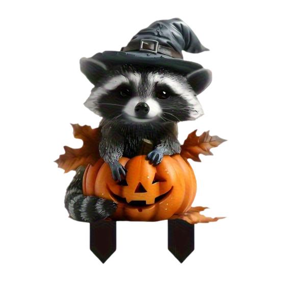 Хэллоуин Енот Садовый Колышек Знак Енот и Тыква с Колышками Осенний Декоративный Колышек для Дома Двора Сада Патио Украшение чёрный