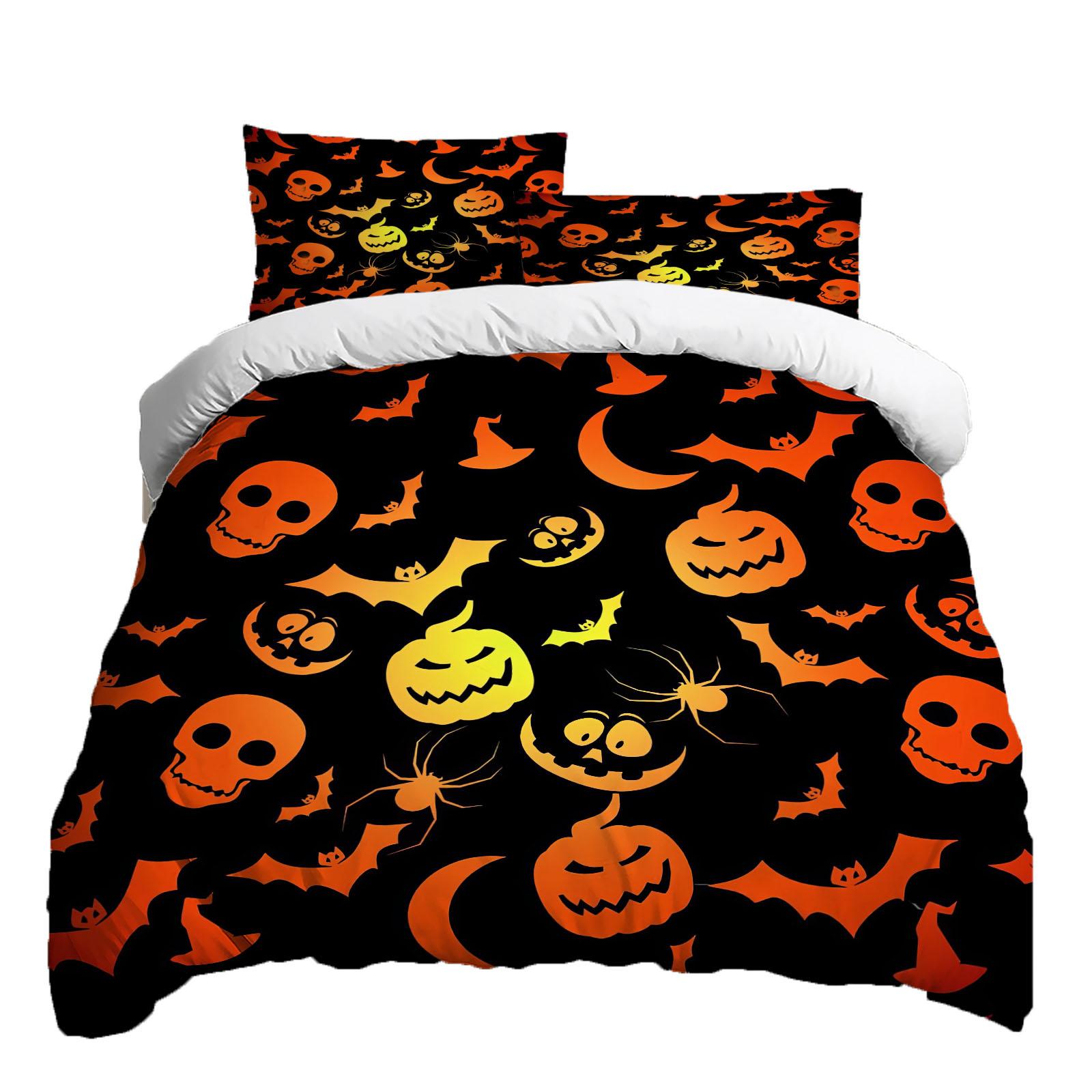 Хэллоуин Комплект постельного белья из трех предметов Пододеяльник Наволочка Матовая ткань Утолщенный XS чёрный